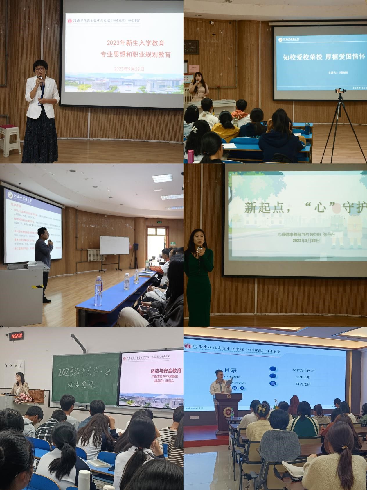 9月28日上午,徐会敏为新生做“专业思想和职业规划教育”主题教育,她从各专业的培养方案介绍入手,围绕选课、补考缓考、补休重修与跟班听课、学分认定等与学生学业相关的五个方面为学生做详细介绍。刘淘淘以“知校爱校荣校 厚植家国情怀”为题为学生做专题引导,使学生从学校概况、大发博彩简介 、书院制建设与探索及大发博彩 育人模式四个方面对大学校园、大发博彩 情况有了全面而详尽的了解,帮助学生尽快融入大学生活。吴明明以“知校爱校荣校 厚植家国情怀”为题为新生解读河南中医药大学学生资助政策,引导学生了解资助的经济学和伦理学意义,树立感恩、自强、诚信、守法等优良品格。校心理教育与咨询中心张丹丹对新生开展了心理适应性教育,他以“新起点,心守护”为题,从学习、生活、交友三个方面出发,通过具体案例,全方位讲解了新同学入学后可能面临的心理适应问题、心理困惑及应对措施。