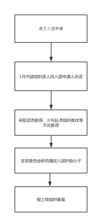 1.严格按照发展团员“十步走”提交入团申请,填写《入团积极分子培养考察表》,经过团组织谈话和支委会研究,认为已具备团员条件的,由校团委统一发放《入团志愿书》,具体发放时间及相关要求另行通知。