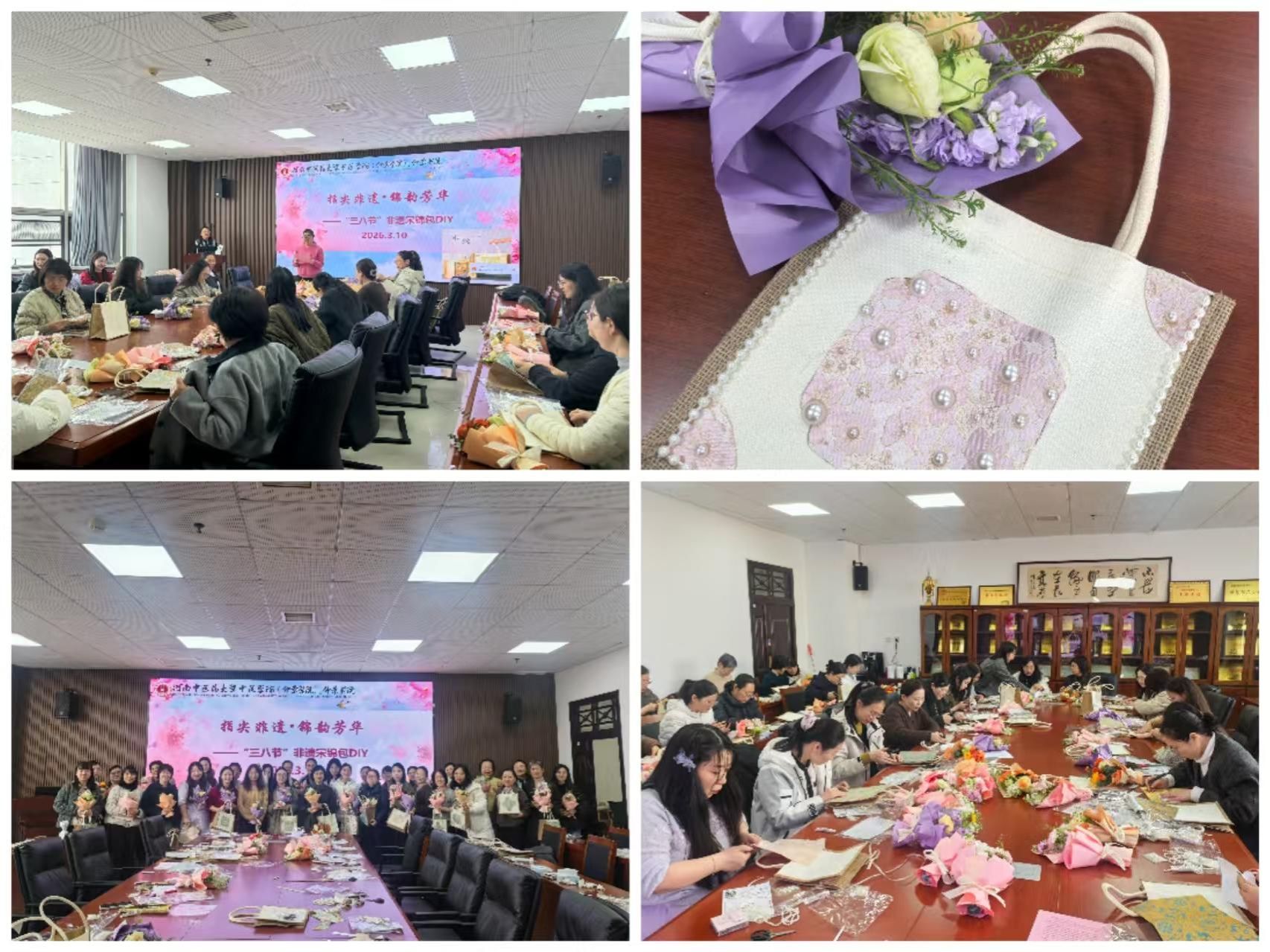(文/图 程凯 靳鸽)为庆祝第116个“三八”国际妇女节,关爱女职工身心健康,传承宋锦非遗技艺,3月10日下午,大发博彩官网 分工会在A332举办“指尖非遗·锦韵芳华”宋锦包DIY主题活动。